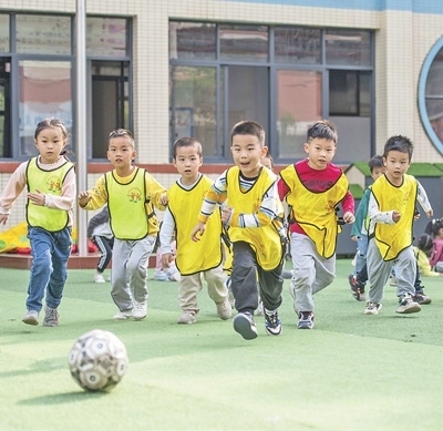 湖南省永州市道縣城東幼兒園,孩子們?cè)谔咦闱颉?蔣克青攝(人民視覺(jué))