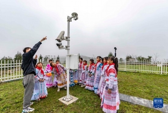3月23日,學(xué)生在貴州省黔西市氣象局綜合氣象觀測站聽工作人員講解智能觀測儀工作原理。
