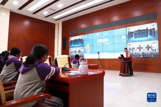 3月23日,工作人員在內(nèi)蒙古自治區(qū)氣象臺為學(xué)生講解氣象知識。