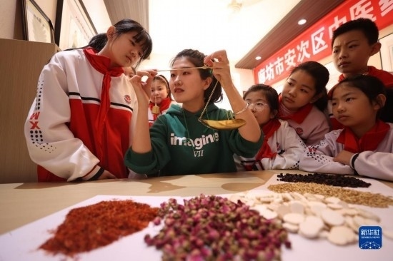 近年來,河北省廊坊市各小學(xué)積極開設(shè)各類豐富多彩的興趣課。廊坊市第五小學(xué)將中醫(yī)藥文化引入校園,通過建設(shè)中醫(yī)藥體驗(yàn)館、開設(shè)中醫(yī)藥相關(guān)課程,讓學(xué)生在游戲互動(dòng)中了解中醫(yī)藥知識(shí),感受中醫(yī)藥文化的魅力。