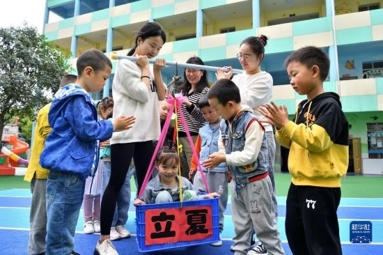 5月5日,河南省濟(jì)源市第一幼兒園的孩子體驗(yàn)立夏習(xí)俗。