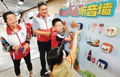 日前,福建省廈門(mén)市婦聯(lián)攜手相關(guān)部門(mén)舉辦“快樂(lè)‘六一’ 安全童行”2023年“六一”體驗(yàn)式生命教育趣味游園活動(dòng)。圖為小朋友們?cè)趨⒓邮称钒踩?tīng)音墻活動(dòng)。 徐 林?jǐn)z |
