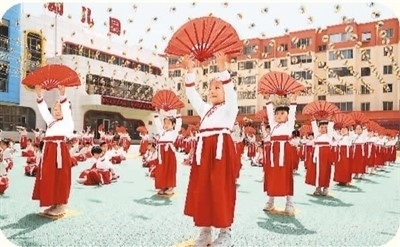 5月30日,甘肅省定西市安定區(qū)中華路幼兒園的小朋友們?cè)诒硌莨?jié)目,在快樂(lè)的氛圍中迎接兒童節(jié)。 王克賢攝(新華社發(fā)) |