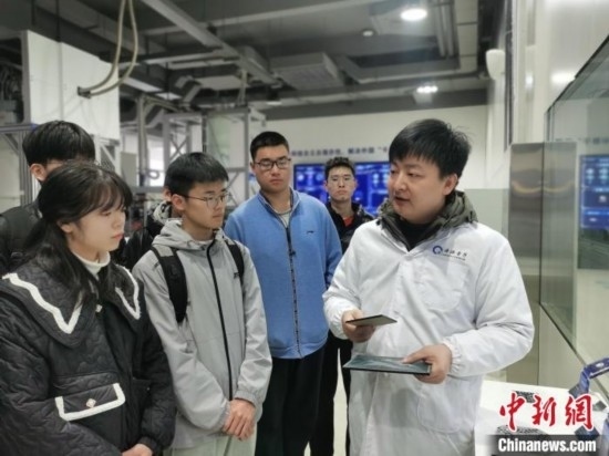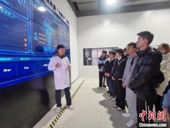 量子計算專家向高校學生介紹量子計算芯片。張俊 攝