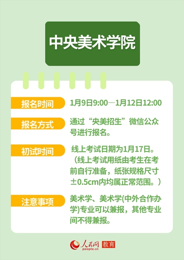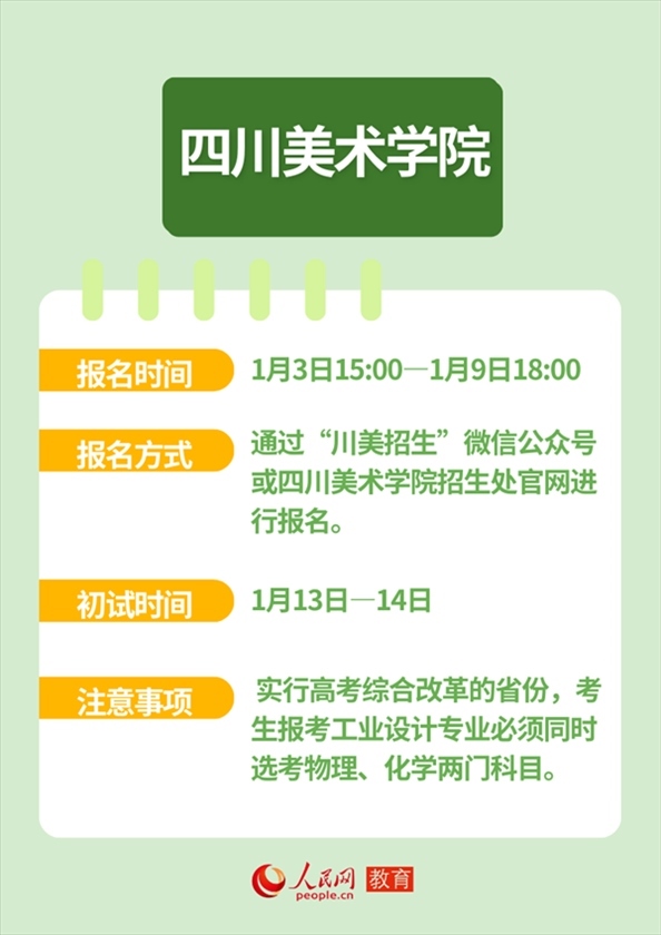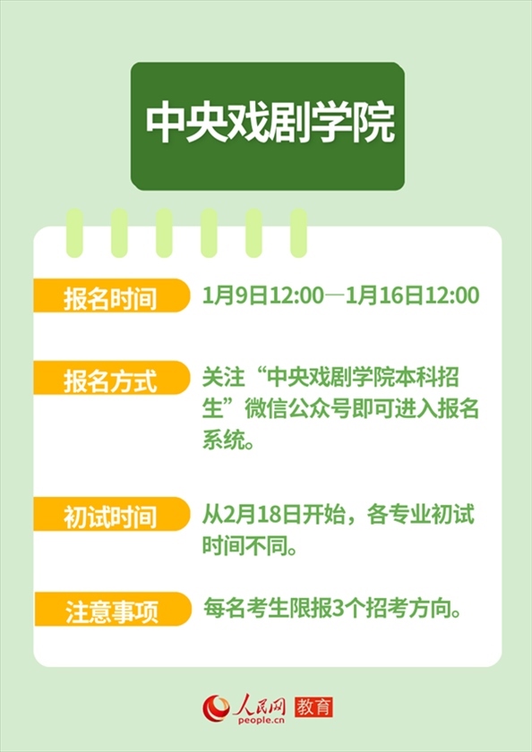人民網(wǎng)北京1月12日電 近日,全國多所高校發(fā)布藝術類本科招生簡章,并明確藝考報名及初試時間。作為“新政”落地后的首次考試,2024年的“新藝考”備受關注。