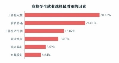 對(duì)我國(guó)東、中、西部地區(qū)7個(gè)省區(qū)市的14所本科院校、4所專科院校,覆蓋研究生、本科生、??粕惾后w,隨機(jī)抽樣的1829份調(diào)查問卷顯示,除工作穩(wěn)定性、薪資待遇外,工作生活平衡、職業(yè)成長(zhǎng)、所在城市、興趣愛好等,也是高校學(xué)生就業(yè)選擇時(shí)看重的因素。