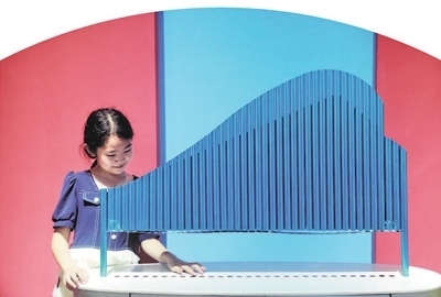 科普教育山東省濰坊市高密市科技館內(nèi),小朋友在體驗(yàn)音樂(lè)科普設(shè)備。李海濤攝(新華社發(fā))