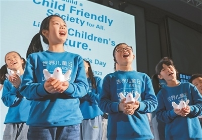 11月20日,世界兒童日主題慶祝活動(dòng)在北京舉行。中國(guó)多地在聯(lián)合國(guó)兒童基金會(huì)的支持下,用象征兒童友好的藍(lán)色燈光點(diǎn)亮了當(dāng)?shù)貥?biāo)志性建筑或社區(qū),以表達(dá)人們對(duì)實(shí)現(xiàn)兒童權(quán)利的承諾。今年世界兒童日的主題是“童享友好世界,點(diǎn)亮兒童未來(lái)”。