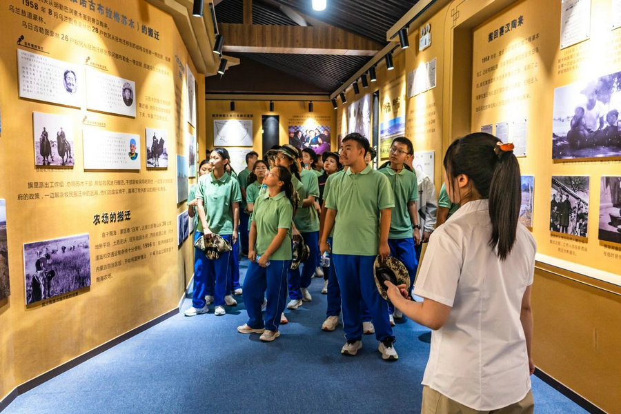 在寶日烏拉黨政機(jī)關(guān)舊址,同學(xué)們聆聽講解,了解“最好牧場(chǎng)為航天”的感人往事, 感受老一輩建設(shè)者們?cè)陲L(fēng)沙中對(duì)祖國(guó)的赤誠(chéng)。烏海市第十中學(xué)胡林濤說(shuō):“聽了‘最好牧場(chǎng)為航天’的故事,我真正懂得了什么是舍小家為國(guó)家。他們帶著牲畜離開世代生活的牧場(chǎng),沒有一句抱怨,眼里只有對(duì)國(guó)家的支持,這種家國(guó)情懷太打動(dòng)人了,以后我也要把這份擔(dān)當(dāng)記在心里,努力成為對(duì)國(guó)家有用的人?!?/p>