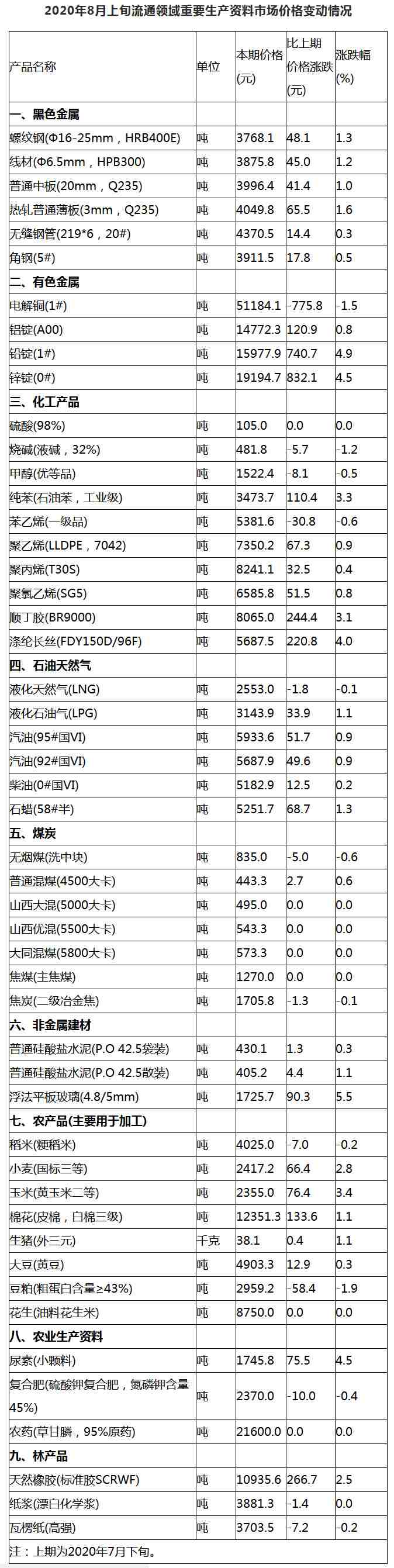 據(jù)國家統(tǒng)計(jì)局網(wǎng)站消息,據(jù)對全國流通領(lǐng)域9大類50種重要生產(chǎn)資料市場價(jià)格的監(jiān)測顯示,2020年8月上旬與7月下旬相比,31種產(chǎn)品價(jià)格上漲,11種下降,8種持平。其中,生豬(外三元)38.1元/千克,與7月下旬相比上漲0.4元,漲幅1.1%。