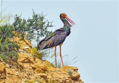 黑鸛在治理后的白獨(dú)貴灣休憩。焦長(zhǎng)青 攝