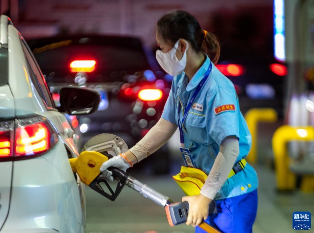 8月9日,江蘇南京一家加油站工作人員給汽車(chē)加油。新華社發(fā)(方東旭 攝)