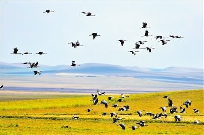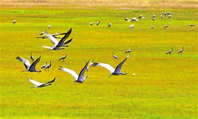 在這優(yōu)美畫(huà)卷中,蓑羽鶴就是額侖草原上的精靈,給草原平添了生命的活力。蓑羽鶴是鶴類(lèi)中個(gè)體最小者,對(duì)生態(tài)環(huán)境質(zhì)量要求很高。從之前的形單影只,到現(xiàn)在的成群結(jié)隊(duì),蓑羽鶴對(duì)額侖草原的青睞,足以說(shuō)明了額侖草原生態(tài)環(huán)境的保護(hù)成效。