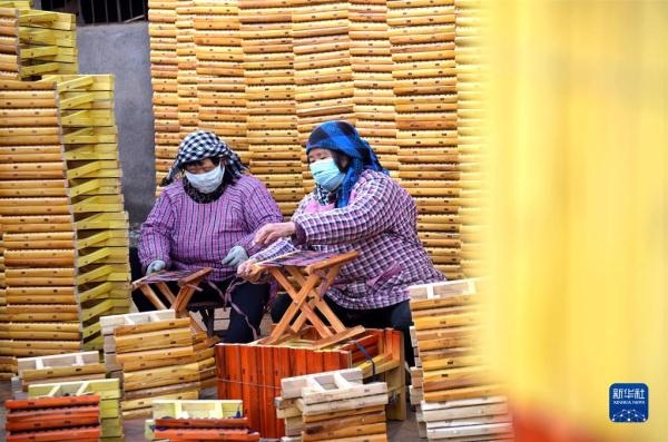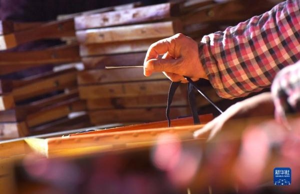 12月6日,山東省淄博市沂源縣石橋鎮(zhèn)馬莊村的村民在加工馬扎。新華社發(fā)(趙東山 攝)