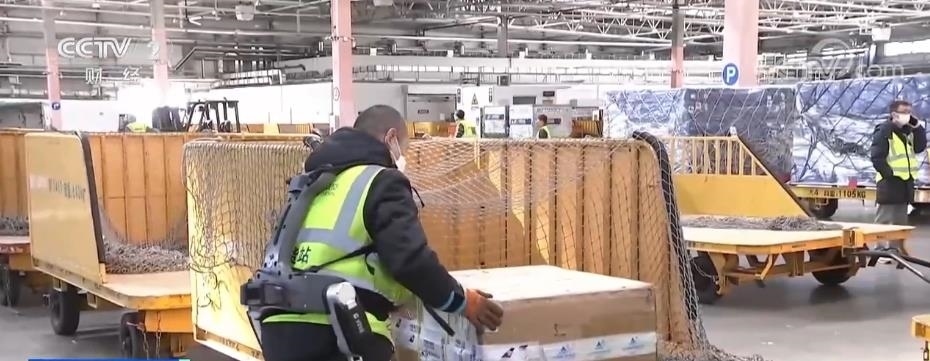 春節(jié)前后貨站的來貨量大增,貨物品種多樣,包裝規(guī)格也不盡相同,很多都需要人工處理。在大興機場的國內貨運站里記者看到,負責搬運的工作人員身穿外骨骼機器人,將很大的貨運箱輕松搬起。工作人員相春江告訴記者,他們貨站前兩年就引進了外骨骼機器人,但是之前貨量小,使用頻率并不高,真正用起來還是在最近。