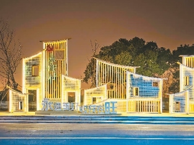 2022年12月28日,獲批全省“未來(lái)鄉(xiāng)村”稱號(hào)的浙江省寧波市鎮(zhèn)海區(qū)永旺村燈光璀璨。胡學(xué)軍攝(人民圖片)