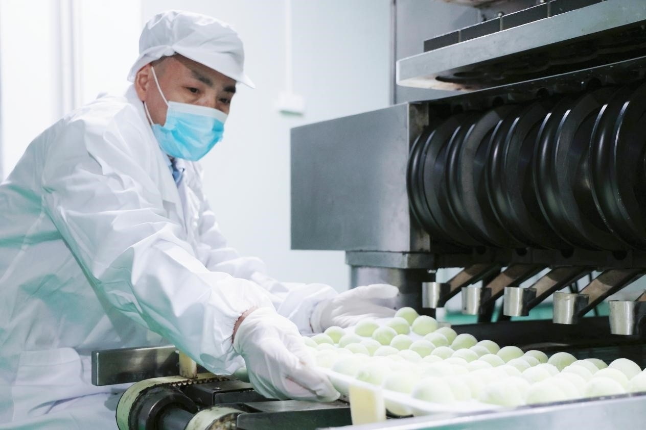 發(fā)展至今,孫府青團(tuán)從幾分錢漲至3.5元/個(gè),生產(chǎn)制造也從小作坊升級(jí)到了6000平方米的大車間。通過(guò)引入先進(jìn)的生產(chǎn)設(shè)備,不斷調(diào)試機(jī)器,力求保證機(jī)械化生產(chǎn)的青團(tuán)最大限度保留古法的原汁原味。