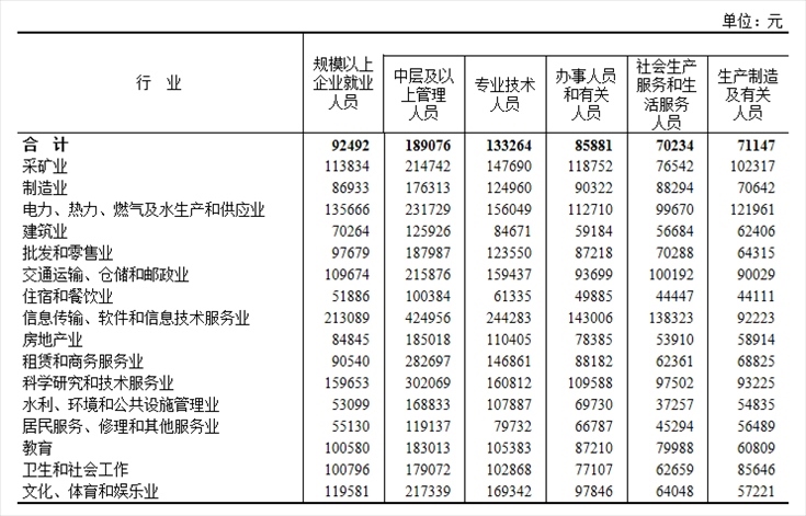 2022年全國(guó)規(guī)上企業(yè)就業(yè)人員年平均工資92492元
