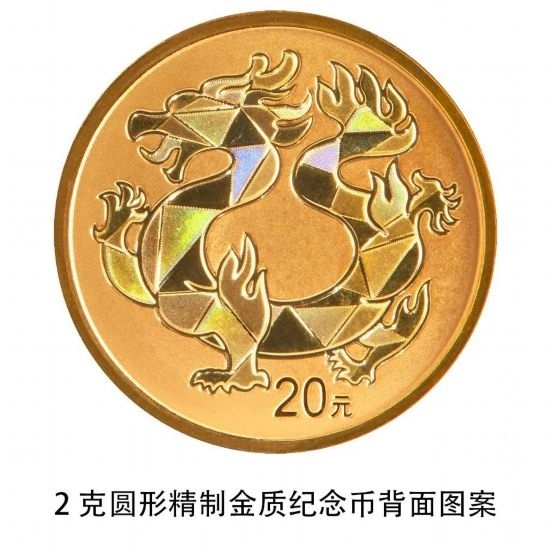 2克圓形金質紀念幣背面圖案為裝飾龍造型,并刊面額。