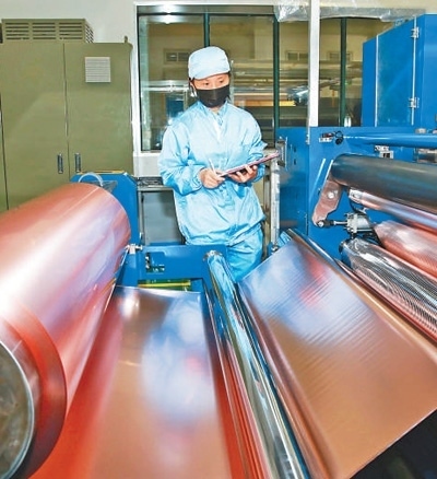 工人在銅陵有色銅冠銅箔有限公司車(chē)間內(nèi)工作。高凌君攝