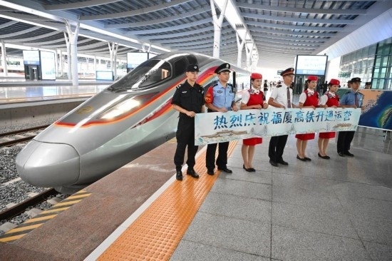 9月28日,G9801次復(fù)興號(hào)智能動(dòng)車組從福廈高鐵福州南站開(kāi)出。新華社記者 林善傳 攝