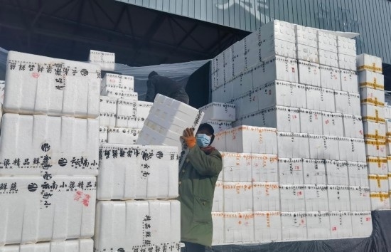 “車來嘍!”“往里倒,再倒,好,裝車!”盡管天氣寒冷,市場里卻是一片火熱的繁忙景象。從各地運來的蔬菜陸續(xù)進(jìn)場,工作人員手腳麻利地將成箱的蔬菜從大車上卸下再裝上小車,隨后,這些蔬菜將運往寧夏各地小型批發(fā)市場和商超?!盀榱耸卟嗽谶\輸過程中不被凍壞,我們給蔬菜蓋了3層棉被,確實下了一番功夫?!鄙虘赳R伏珍說。