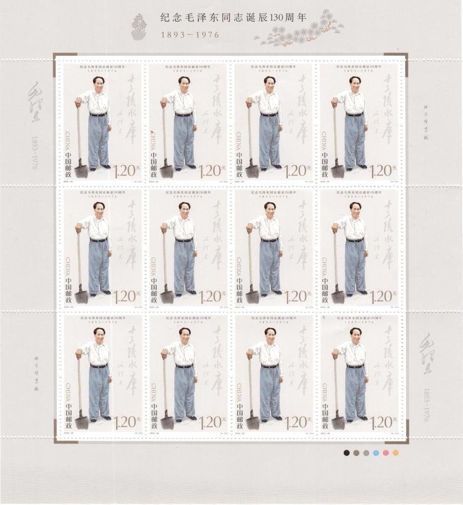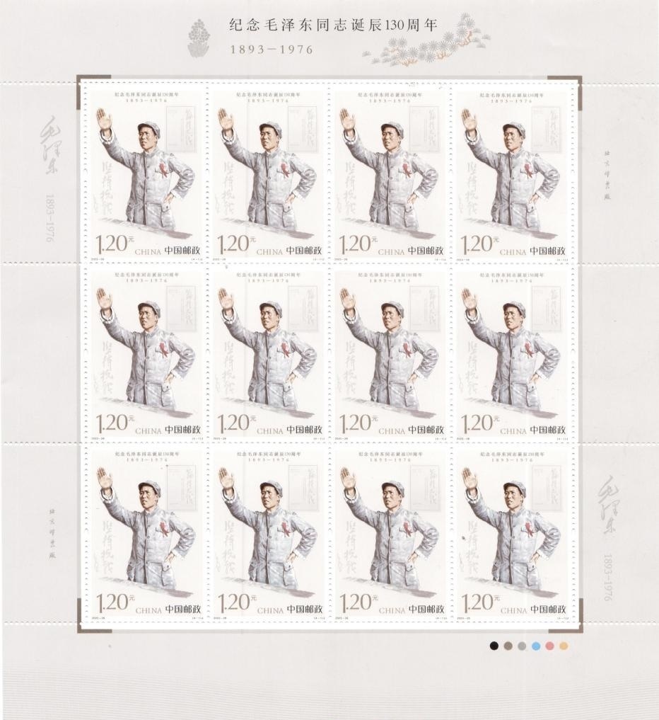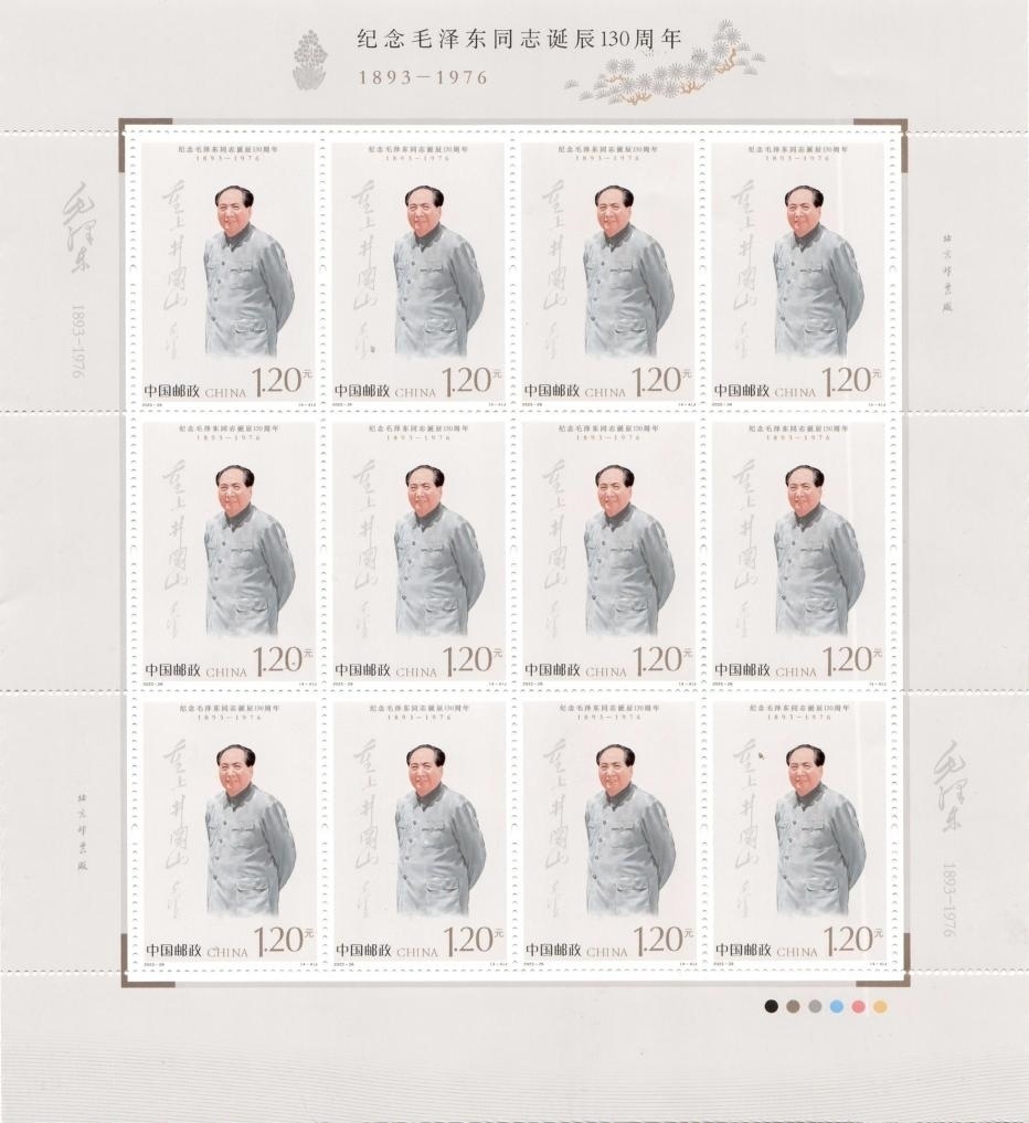 中國郵政發(fā)行《紀(jì)念毛澤東同志誕辰130周年》紀(jì)念郵票