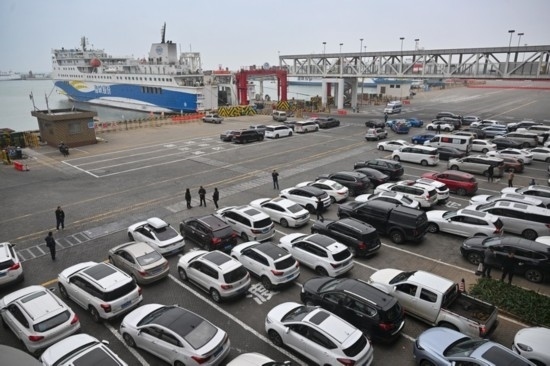 2024年1月26日,車輛在??谛潞8鄣却谴?。新華社記者 郭程 攝