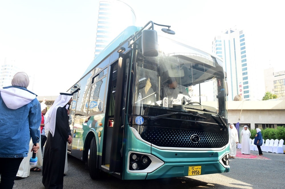 這是2022年12月21日在科威特首都科威特城拍攝的科威特首輛電動(dòng)客車運(yùn)營儀式上的電動(dòng)金龍客車。新華社記者 尹炣 攝