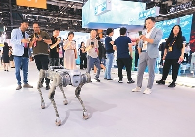 觀眾在2024年中國國際服務(wù)貿(mào)易交易會(huì)上觀看四足機(jī)器狗表演。以上圖片均由陳曉根攝(人民視覺)