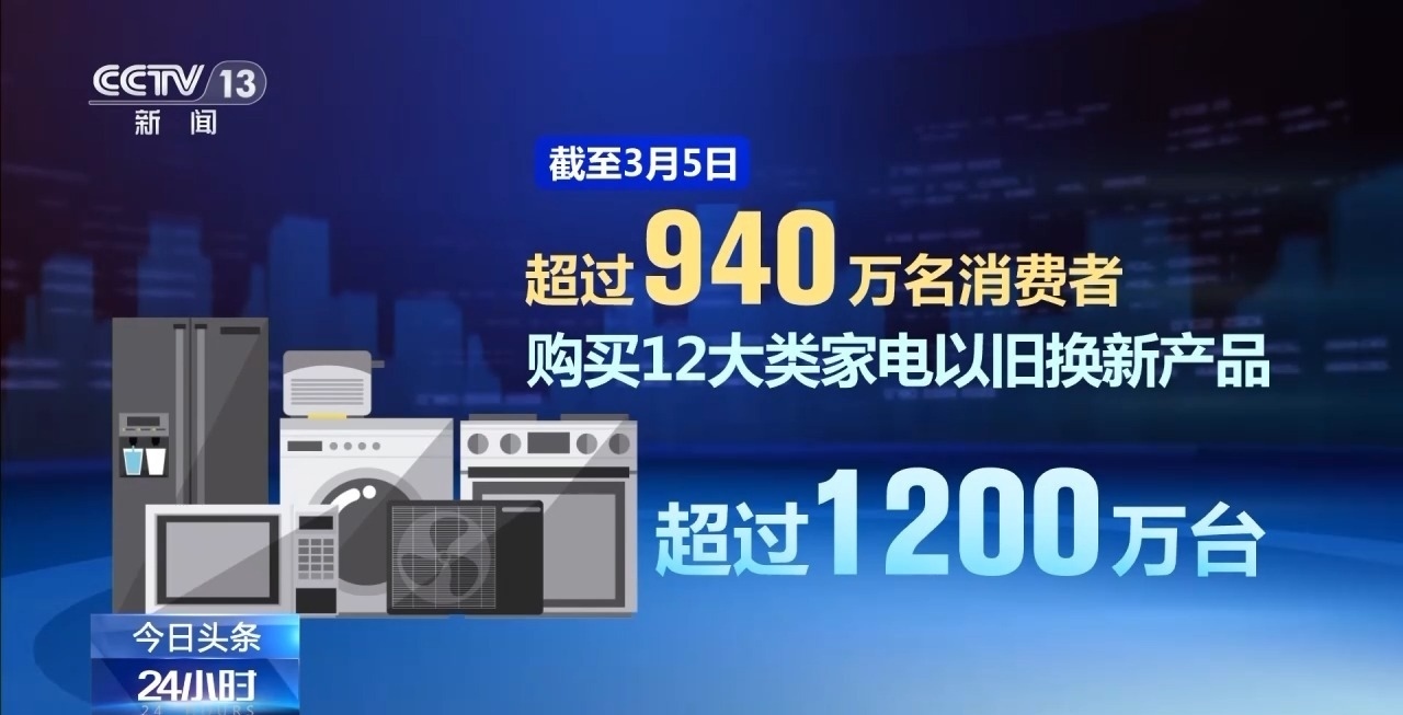 商務(wù)部數(shù)據(jù)顯示,截至3月5日,超過(guò)940萬(wàn)名消費(fèi)者購(gòu)買(mǎi)12大類(lèi)家電以舊換新產(chǎn)品超過(guò)1200萬(wàn)臺(tái),已有超過(guò)3400萬(wàn)名消費(fèi)者申請(qǐng)了超過(guò)4200萬(wàn)件手機(jī)等數(shù)碼產(chǎn)品購(gòu)新補(bǔ)貼。