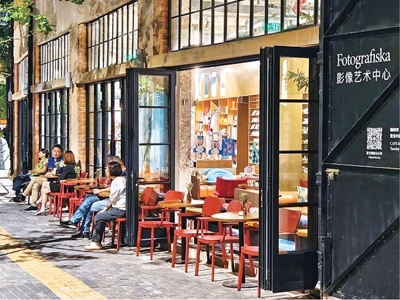蘇州河邊,由老建筑改造的富圖格雅影像藝術(shù)中心準點營業(yè),工作人員搬出一張張座椅,沿老建筑磚紅色墻體一字擺開。市民游客坐在椅子上休憩,沉浸在濃厚的藝術(shù)氛圍中。富圖格雅公司負責(zé)人江美玲說,擺設(shè)座椅的想法,源自一本《營商護照》。