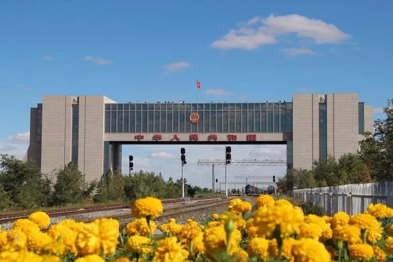 國(guó)門莊嚴(yán)肅穆,在國(guó)門乳白色的門體上方嵌著"中華人民共和國(guó)"7個(gè)鮮紅大字,上面懸掛的國(guó)徽閃著的金光,國(guó)際鐵路在下面通過(guò)。國(guó)門下方的中蒙鐵路,是連接首都北京和烏蘭巴托、莫斯科的鐵路交通大動(dòng)脈,被譽(yù)為“歐亞大陸橋”。