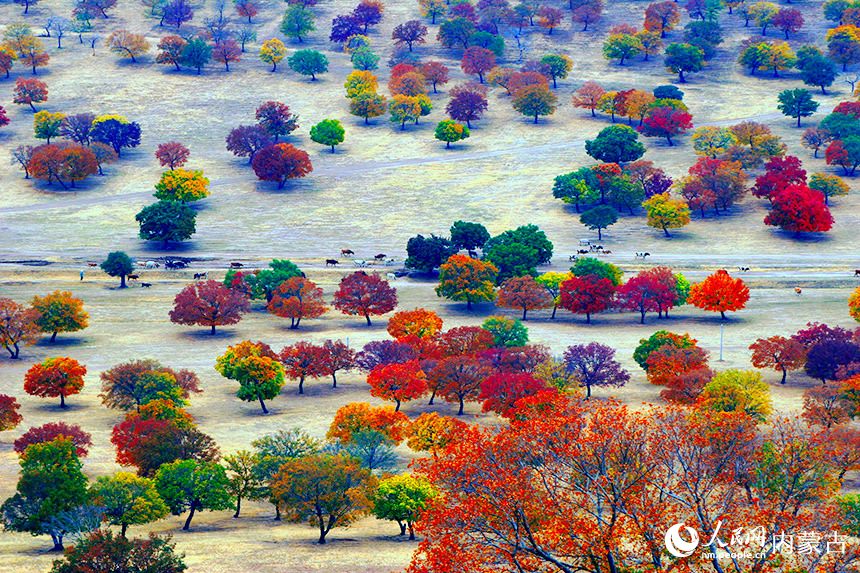 十月深秋,漫山紅遍。內蒙古興安盟五角楓迎來最佳觀賞期。颯颯金風拂過,五角楓林層林盡染,楓葉形態(tài)各異、五彩繽紛。秋日“楓”景美不勝收。(富麗娟、劉藝琳)