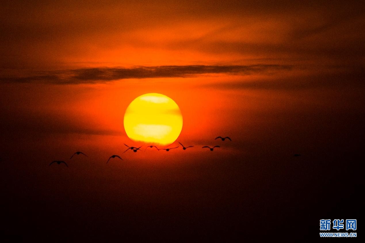 候鳥與夕陽。新華網發(fā)(董靜 攝)