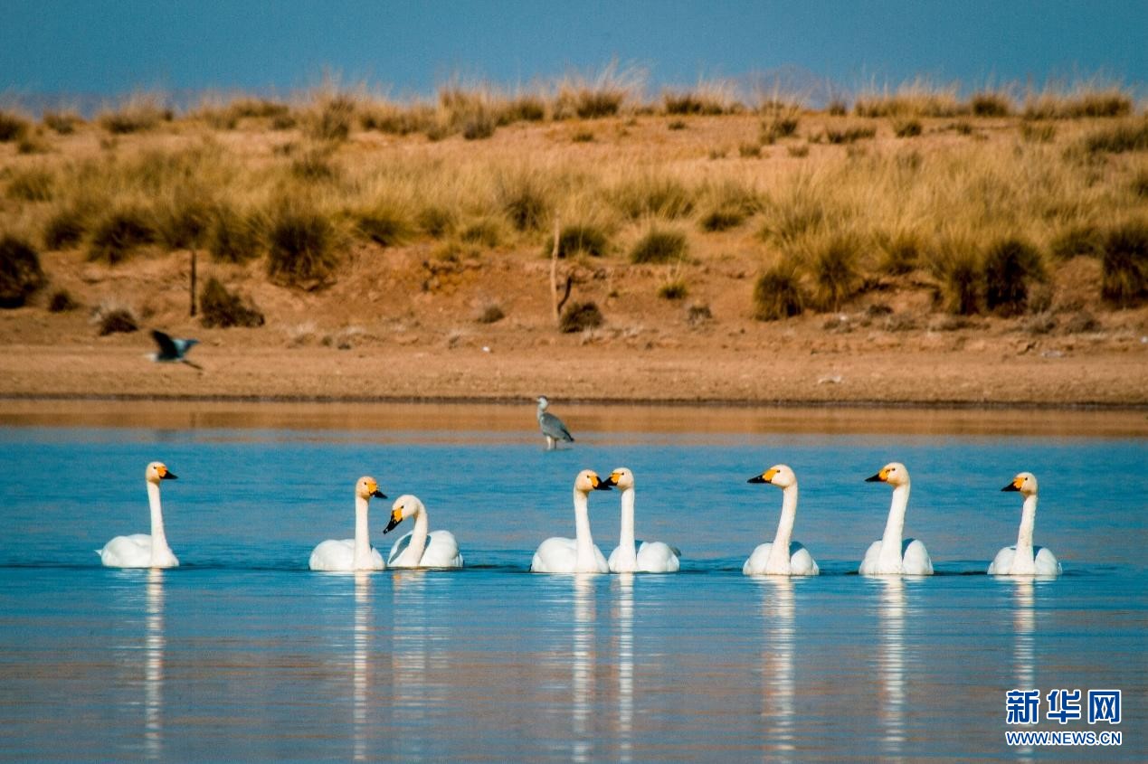 天鵝在河中游弋。新華網發(fā)(董靜 攝)