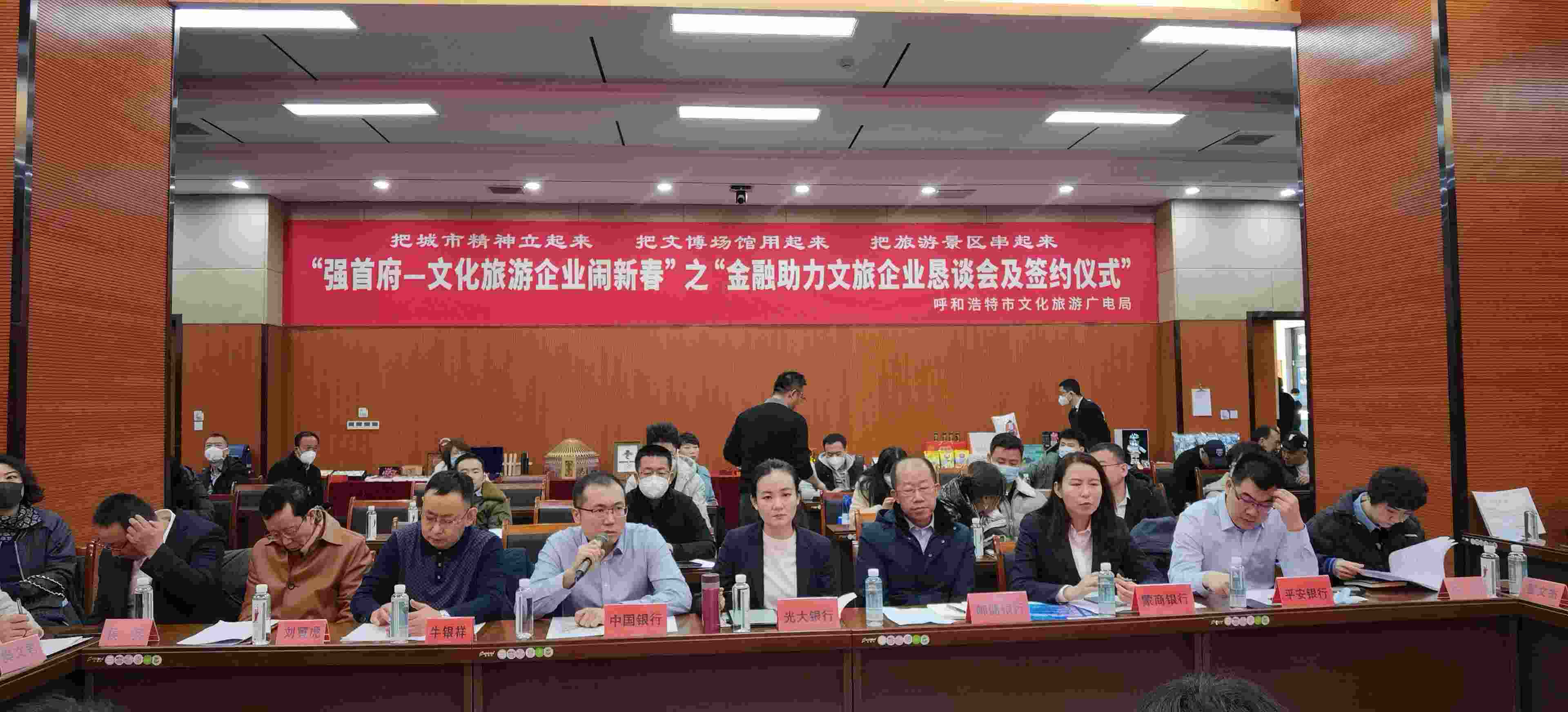 2月4日,呼和浩特市文化旅游廣電局與呼市工商聯(lián)(總商會(huì))舉辦“強(qiáng)首府—文化旅游企業(yè)鬧新春”之“金融助力文旅企業(yè)懇談會(huì)及簽約儀式”,共同為首府提振市場(chǎng)信心、促進(jìn)文化旅游產(chǎn)業(yè)高質(zhì)量發(fā)展、促進(jìn)首府“六大產(chǎn)業(yè)集群”作出貢獻(xiàn)?! ?/p>