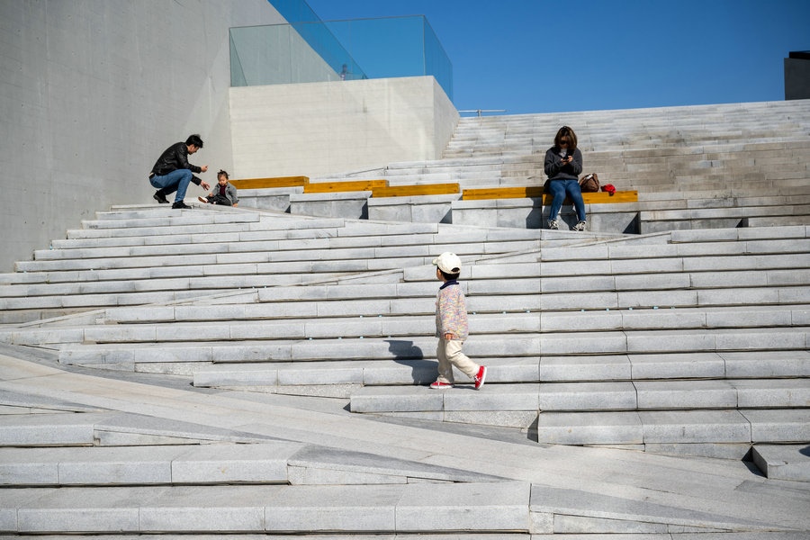 10月18日,家長在呼和浩特雕塑藝術(shù)館外為孩子拍攝