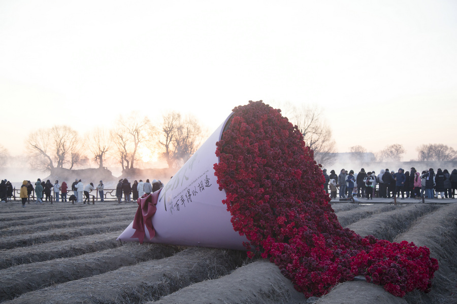 “千島湖”畔,巨型美陳解鎖千島湖新花樣,游客們在觀賞霧凇和赤麻鴨的同時(shí),與其合影后,可以領(lǐng)取一只可愛的赤麻鴨公仔。此外,還有冬日音樂派對、后備箱集市等,讓這個(gè)冬日熱鬧非凡。