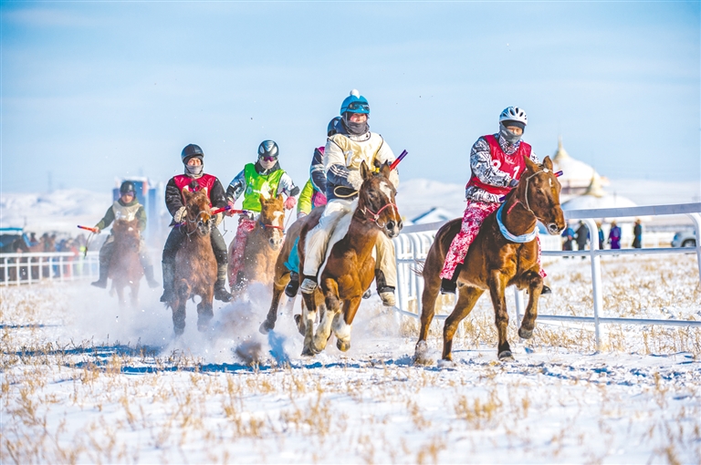 1月18日,錫林浩特市那達(dá)慕風(fēng)情園內(nèi)馬蹄踏雪、人聲鼎沸,“歌游內(nèi)蒙古·暢享錫林浩特”——冬季那達(dá)慕暨蒙古馬超級(jí)聯(lián)賽在歡騰的歌聲中拉開(kāi)序幕。開(kāi)幕式上,隨著馬蹄的噠噠聲,一支雄壯的馬隊(duì)踏雪而來(lái),騎手們身著艷麗的蒙古袍,駕馭著矯健的蒙古馬,以整齊的隊(duì)列自遠(yuǎn)處緩緩走來(lái)。歌聲悠揚(yáng),舞姿豪邁,演員們以動(dòng)人的演繹,完美詮釋了力量與藝術(shù)之美。本次賽事包含15公里耐力賽、10公里3人團(tuán)體接力賽、跑馬射箭、跑馬拾哈達(dá)、6公里走馬及搏克比賽等比賽項(xiàng)目。賽場(chǎng)上,騎手們馭馬飛馳,人與馬默契配合,在銀裝素裹的雪原上縱橫馳騁。在跑馬射箭與跑馬拾哈達(dá)項(xiàng)目上,騎手在飛奔的馬匹上挽弓搭箭、俯身拾物,動(dòng)作行云流水,精湛技藝引來(lái)觀眾陣陣驚呼與贊嘆。除了扣人心弦的比賽,本次活動(dòng)還為游客打造了豐富的冰雪互動(dòng)體驗(yàn)。冰雪涮肉宴香氣四溢,草原篝火電音派對(duì)將熱情推向高潮,千人雪戰(zhàn)、雪地拔河等趣味項(xiàng)目讓游客親身參與,盡情享受冰雪樂(lè)趣。現(xiàn)場(chǎng)還同步舉辦了錫林浩特“伊德喜”草原冬儲(chǔ)肉展銷(xiāo)活動(dòng),讓游客在觀賽之余,還能選購(gòu)到正宗錫林郭勒牛羊肉,體驗(yàn)純正的草原風(fēng)味。(記者