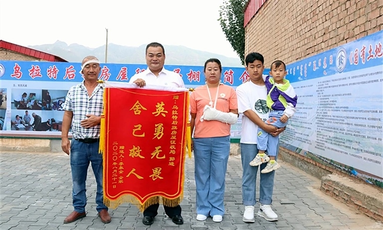 “太謝謝你了,你是我們一家四口的救命恩人,我們一輩子都會(huì)感激你?!毖壑酗柡瑹釡I的李永全緊緊握著郭進(jìn)的手說。8月21日一大早,李永全一家就趕到了郭進(jìn)的工作單位后旗房屋征收局,將一面寫有“英勇無畏舍己救人”的錦旗,送到了恩人郭進(jìn)的手中。