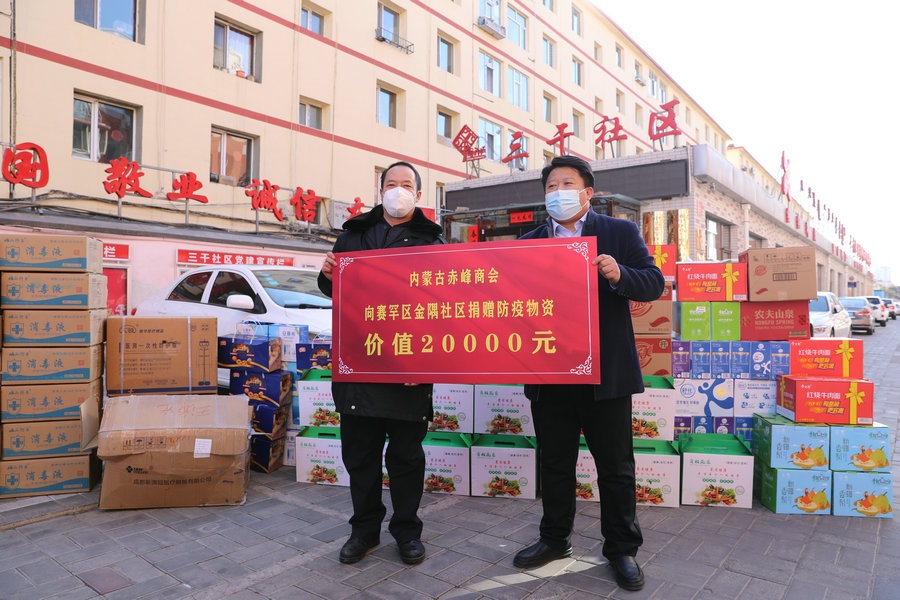 北疆新聞網(wǎng)、北疆新聞APP、北疆云消息(記者 張楊)2月26日下午,由呼和浩特市政協(xié)、呼和浩特市政協(xié)文化文史和學(xué)習(xí)委員會(huì)倡議,內(nèi)蒙古赤峰商會(huì)發(fā)起的抗疫物資捐贈(zèng),在呼和浩特市賽罕區(qū)烏蘭察布街道辦事處三干社區(qū)舉行。內(nèi)蒙古赤峰商會(huì)攜會(huì)員企業(yè),向呼和浩特市賽罕區(qū)金隅社區(qū)、錦泰榕城社區(qū)、三干社區(qū)和沙爾沁鎮(zhèn)政府捐贈(zèng)了價(jià)值10萬(wàn)元的抗疫急需物資,助力呼和浩特市一線(xiàn)抗疫。