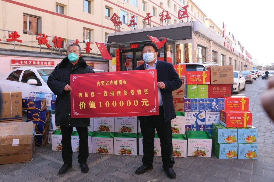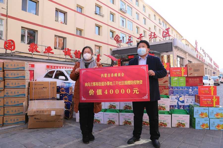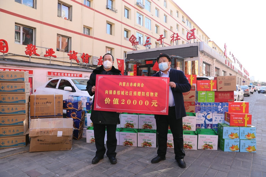 自疫情發(fā)生以來(lái),內(nèi)蒙古赤峰商會(huì)慰問(wèn)了呼和浩特市公安局賽罕區(qū)分局昭烏達(dá)路派出所,向抗疫一線(xiàn)公安民警表達(dá)慰問(wèn),并為他們送去第一批價(jià)值1萬(wàn)元的抗疫物資;商會(huì)執(zhí)行會(huì)長(zhǎng)張學(xué)春向新城區(qū)城市管理局捐贈(zèng)5萬(wàn)元防疫物資,用于一線(xiàn)疫情防控;商會(huì)副會(huì)長(zhǎng)單位內(nèi)蒙古乾碩防水工程有限公司分別向呼和浩特市4個(gè)社區(qū)2個(gè)衛(wèi)生院捐贈(zèng)了價(jià)值10萬(wàn)元的防疫物資及生活必需品;商會(huì)聯(lián)合副秘書(shū)長(zhǎng)單位蒙影影業(yè),走進(jìn)玉泉區(qū)清泉街社區(qū),慰問(wèn)抗疫一線(xiàn)工作人員,并為他們送去價(jià)值5000元的生活物資;商會(huì)聯(lián)合副會(huì)長(zhǎng)單位友鵬實(shí)業(yè)集團(tuán),向回民區(qū)大慶路小學(xué)、伊利健康谷、東庫(kù)街社區(qū)、呼和浩特職業(yè)學(xué)院等防控一線(xiàn)捐贈(zèng)價(jià)值10萬(wàn)元的防疫物資。