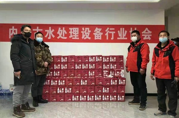 2月24日上午,內(nèi)蒙古水處理設(shè)備行業(yè)協(xié)會秘書長高有和骨干會員單位與內(nèi)蒙古自治區(qū)政協(xié)副主席、自治區(qū)工商聯(lián)主席安潤生一行,前往呼和浩特市賽罕區(qū)人民政府,看望政府值班人員,并為一線抗疫人員送去抗疫急需物資。當天還為新城區(qū)勝利路社區(qū)捐贈100件蘇打水,為賽罕區(qū)紅十字會捐贈4件消毒液、300件蘇打水、6000個口罩、10臺電暖氣等抗疫物資。