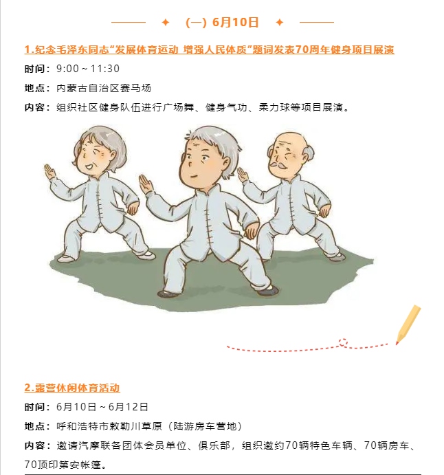 記者從自治區(qū)體育局獲悉,紀念毛澤東同志“發(fā)展體育運動,增強人民體質(zhì)”題詞70周年暨“歡樂草原健康內(nèi)蒙古”第十三屆全區(qū)全民健身運動會將于6月10日至11日歡樂開啟。