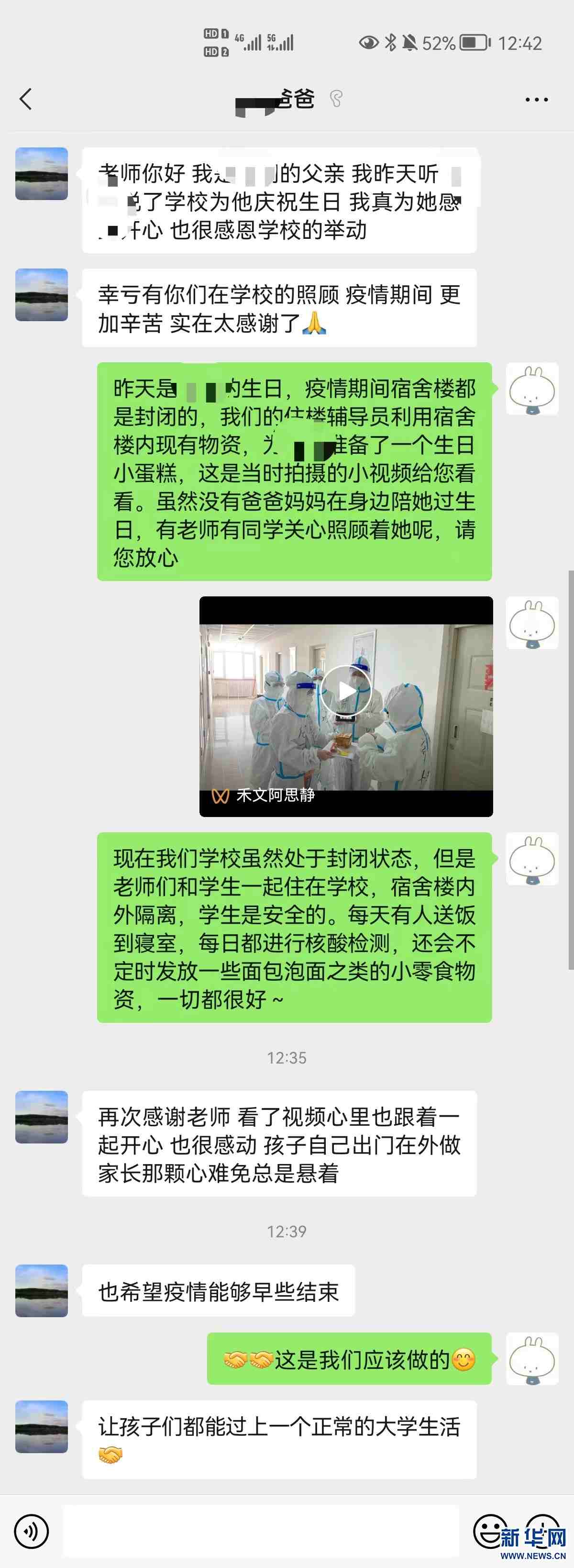 內(nèi)蒙古工業(yè)大學(xué)北二公寓學(xué)生家長(zhǎng)向老師們表示感謝。新華網(wǎng)發(fā)(受訪者供圖)