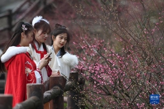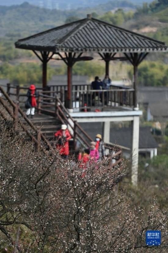 當(dāng)日,西塞山第五屆梅花節(jié)在浙江省湖州市吳興西塞山旅游度假區(qū)原鄉(xiāng)小鎮(zhèn)景區(qū)開幕,盛開的梅花吸引不少游客前來(lái)觀賞。