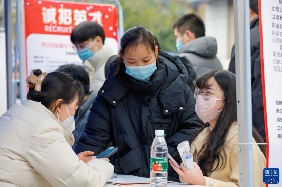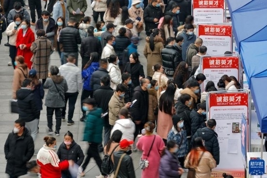 2月17日,人們在中國成都人力資源服務(wù)產(chǎn)業(yè)園查看招聘信息,尋找工作機(jī)會。
