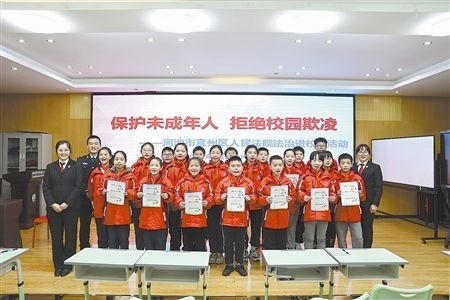 課上,法院干警通過精心準(zhǔn)備的普法短視頻,從“什么是校園欺凌”“校園欺凌的類型”“遭遇欺凌該怎么辦”入手,結(jié)合現(xiàn)階段學(xué)生的年齡特征,用通俗易懂的語(yǔ)言為學(xué)生們普及未成年人保護(hù)的相關(guān)法律知識(shí),引導(dǎo)學(xué)生們樹立正確的三觀,增強(qiáng)遵紀(jì)守法的意識(shí),提高自我保護(hù)的能力,自覺做到尊法學(xué)法守法用法。同時(shí),現(xiàn)場(chǎng)進(jìn)行互動(dòng)交流和趣味問答,點(diǎn)燃師生學(xué)法用法的積極性,給師生們備足了法治“干貨”。