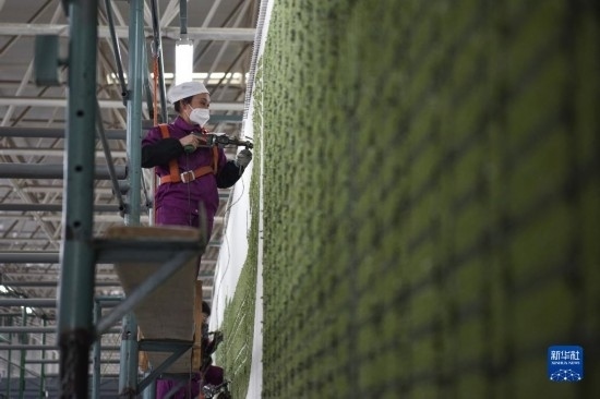 2月21日,在西寧市圣源地毯集團有限公司生產(chǎn)車間,操作工檢查毯面、拔花刺。